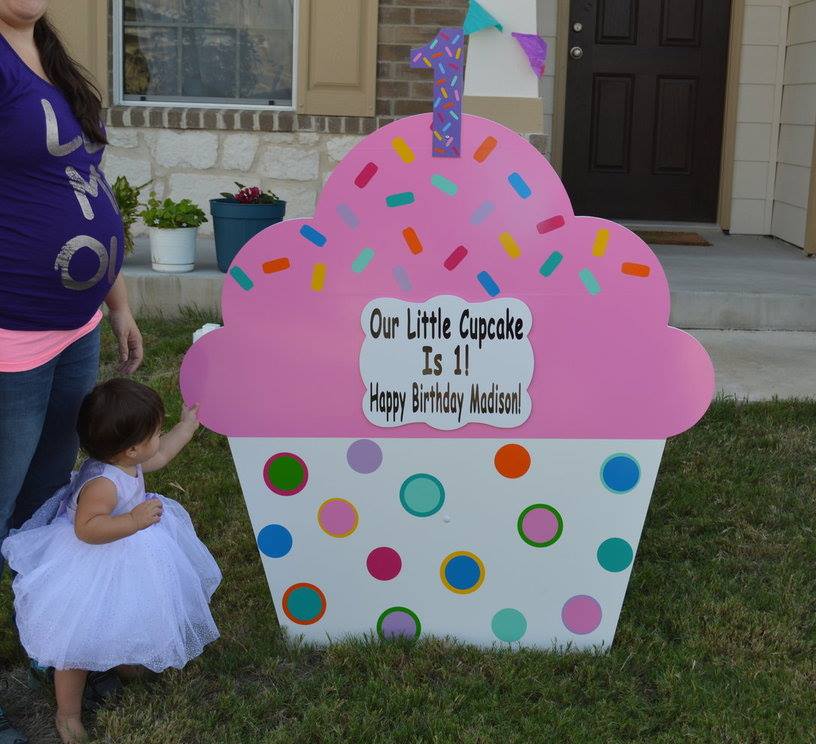 Please contact us at 210-601-7351 a stork sign to welcome home your new baby or grandchild or a custom cupcake or Flamingo lawn sign to celebrate a birthday in style.