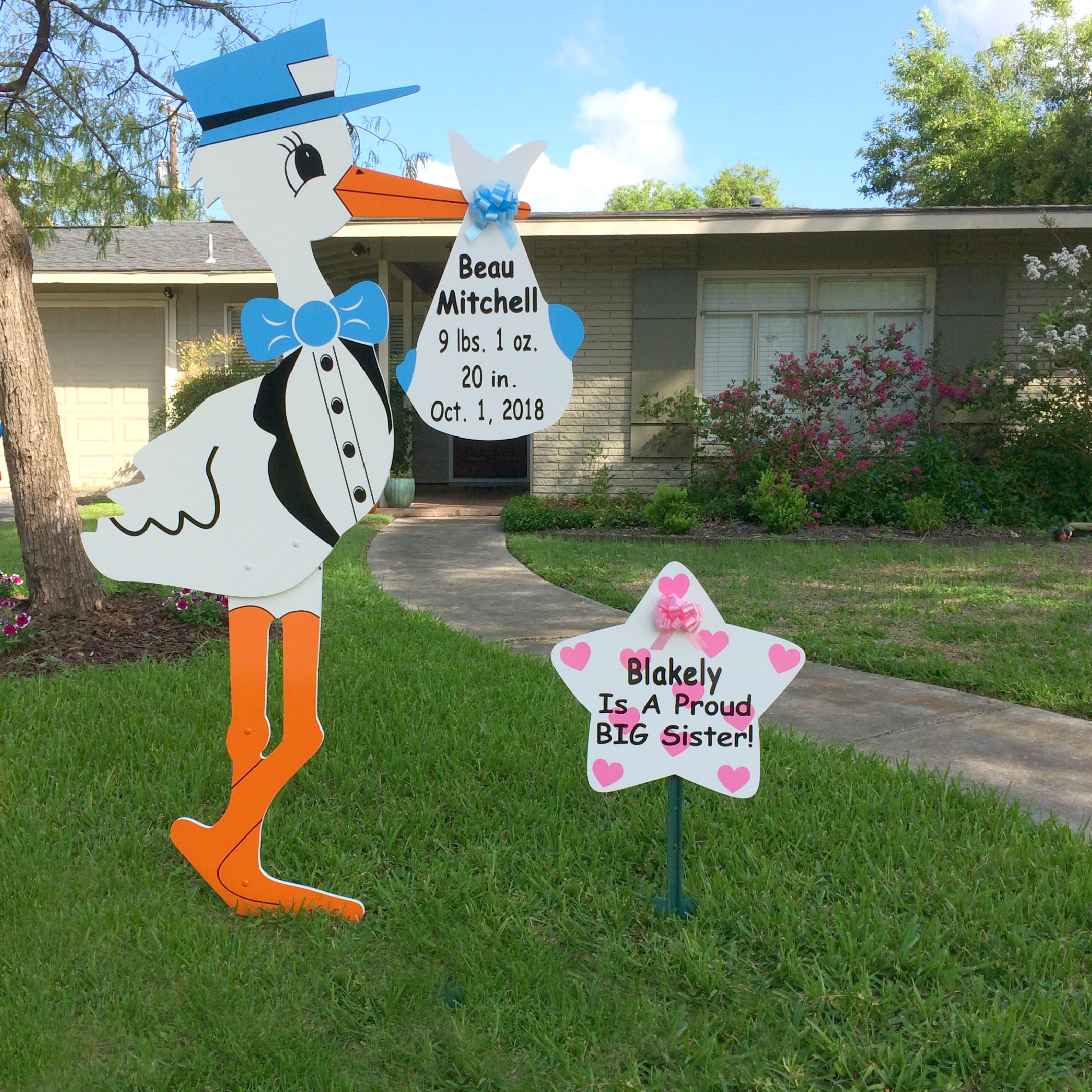Boy Stork Sign, Hearts Sibling Sign